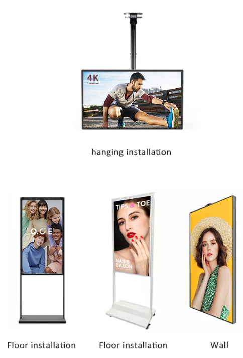 Digital advertising screens 32", 43", 44", 65", 75", 86" in diameter. Comes with wallmount accessory.